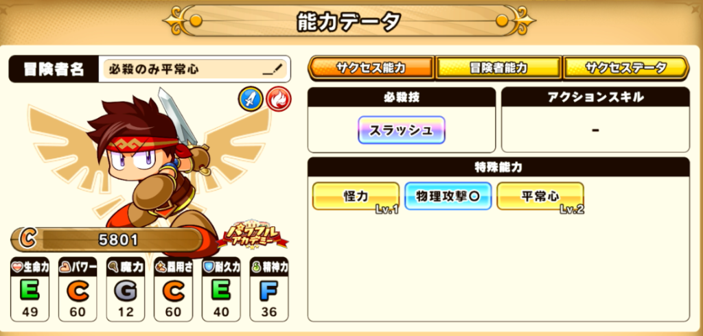 | 基礎能力 | パワー60(C) / 器用さ60(C) |