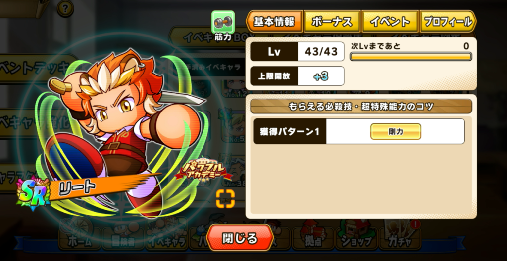 - 評価: 筋力訓練はリート含め2体しかおらず現環境で代用不可。筋力キャラの中でも評価1位。持っていれば物理アタッカーの育成が劇的に楽になります。パワフルアカデミーのサクセス内にある教本に必要な能力が下がるのも最大の強み。SRではこのガチャの3体のみ。