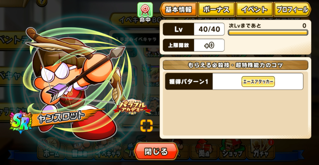 - 強み: [金特「エースアタッカー」タッグボーナス60%コツボーナス・やる気効果アップ40%]