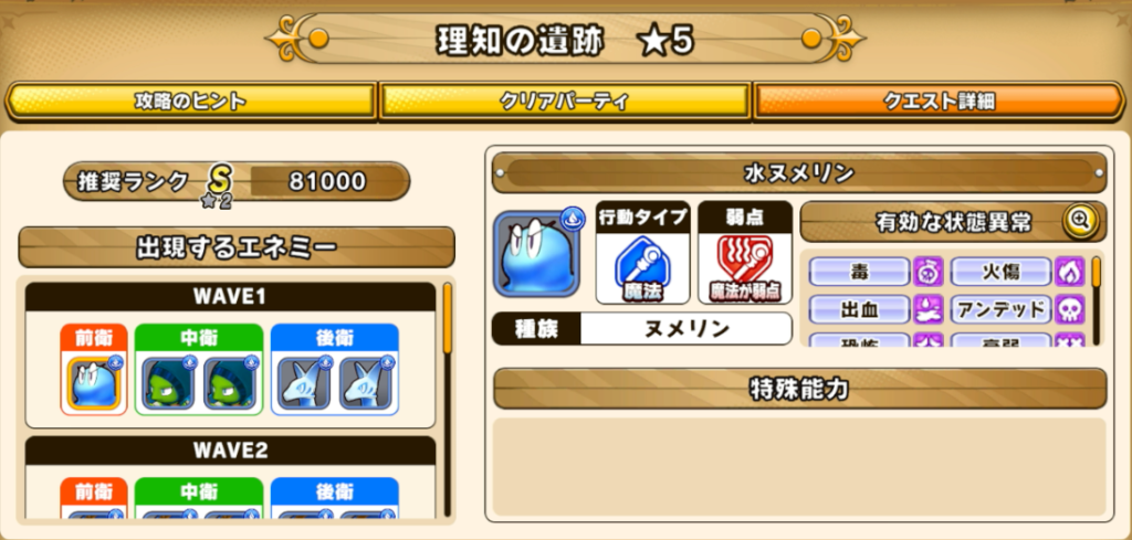 この遺跡探索のステージは「魔法対策をしたタンク+魔法+物理」が必要なクエストです。