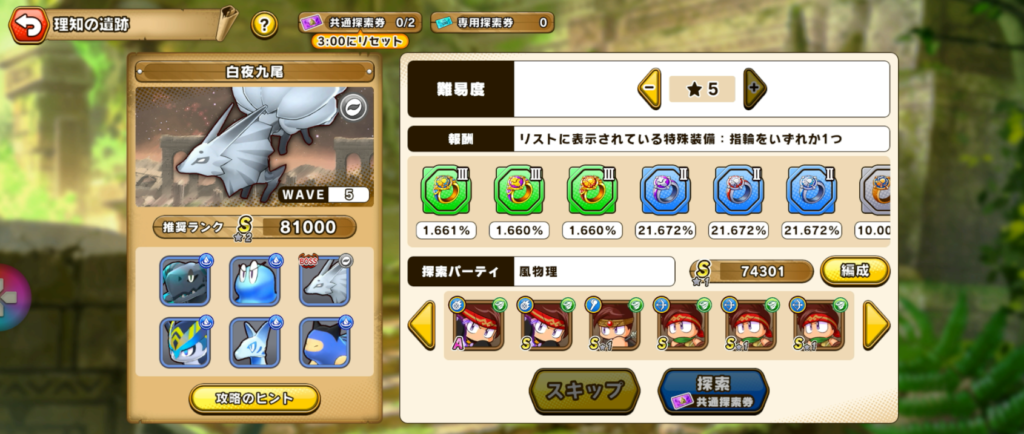 今回の記事は理知の遺跡★5「白夜九尾」の攻略記事となります。