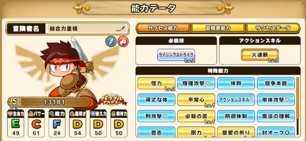 サクセスで育成したキャラを実際に使う際は、査定ではなく役割で考える必要があります。「火力」「耐久」「スキル」このバランスが取れていないと、ランクが高くても勝てません。