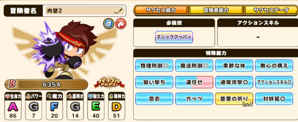 ステータス・スキル構成はこちらです。