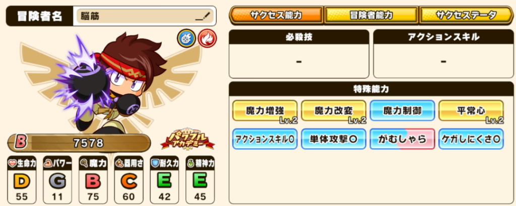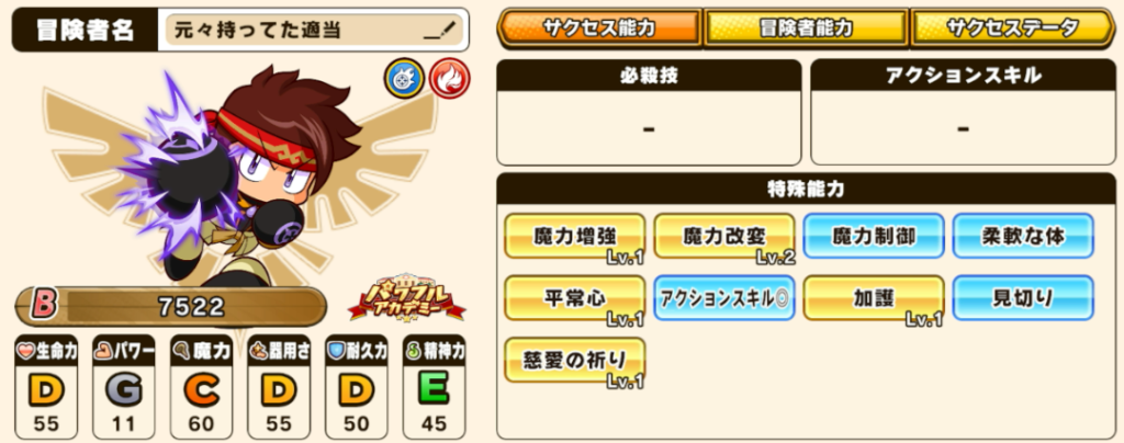 ステータス・スキル構成は以下の通りです。