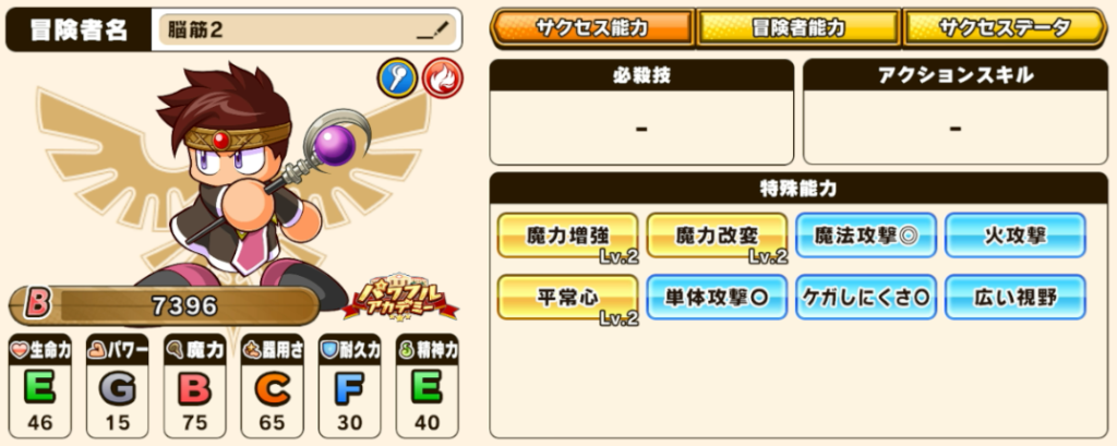- 彼女1 / 持久力1 / 瞬発力2 / 知能2