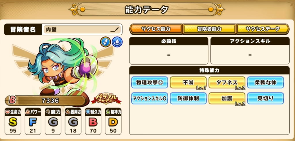 - 後衛3体は生命力C(800)までHP確保+魔力特化
